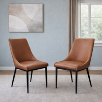 2 Chaise en cuir véritable cognac pied en métal noir